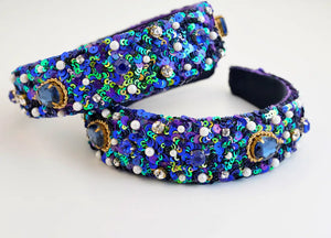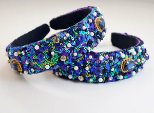Mid-Night Blue Sequins & Jewelled Headband