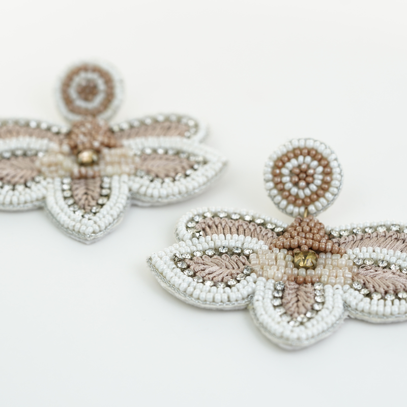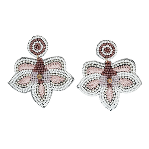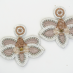 These enchanting earrings feature delicate butterfly designs crafted from shimmering pink beads. The wings are intricately detailed, capturing the graceful flutter of a butterfly in flight. Each earring showcases a blend of soft pink hues, creating a harmonious and elegant look. The central body of the butterfly is highlighted with a slightly darker pink bead, adding depth and contrast to the design. Perfect for adding a touch of whimsy and charm to any outfit, these earrings are a beautiful accessory for both casual and formal occasions.